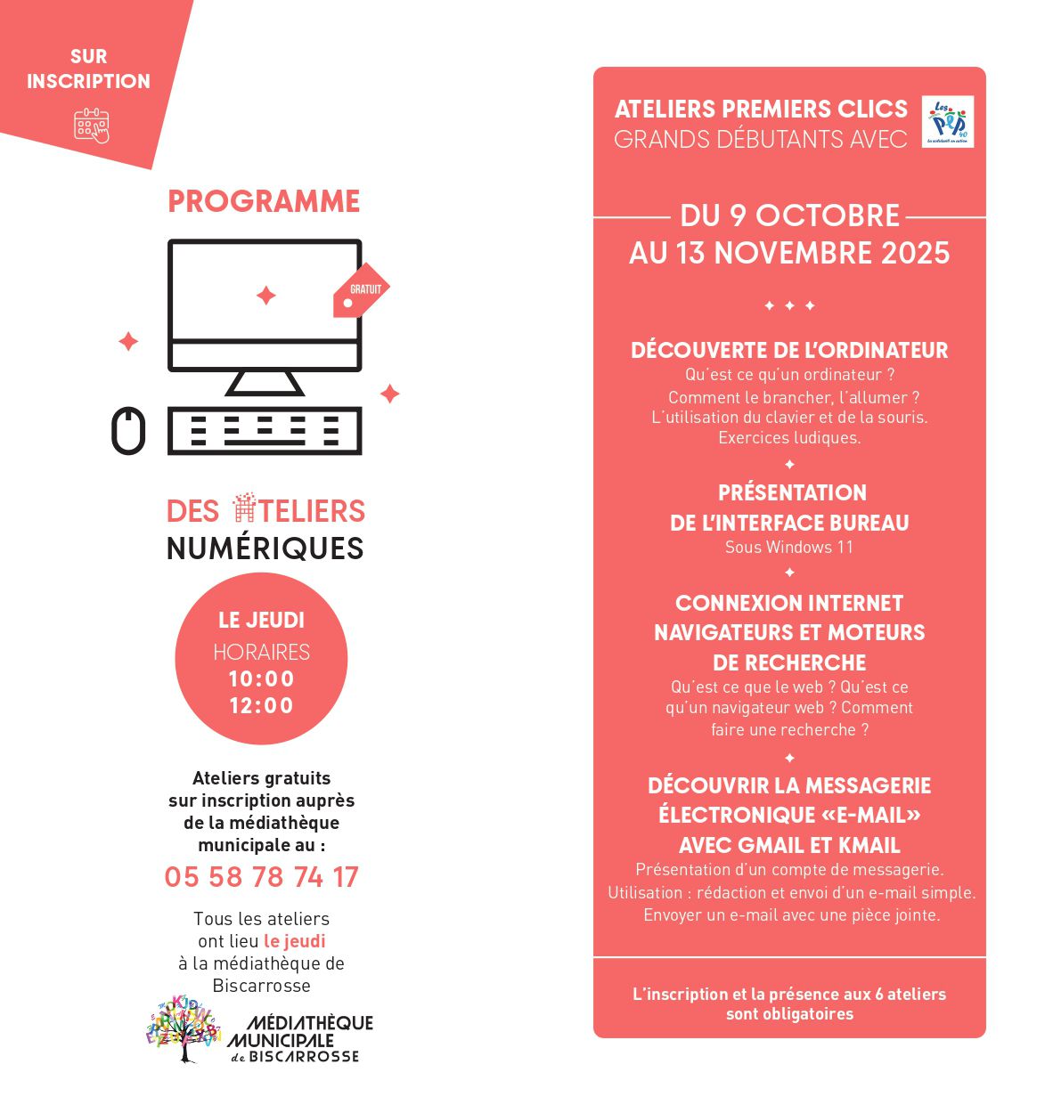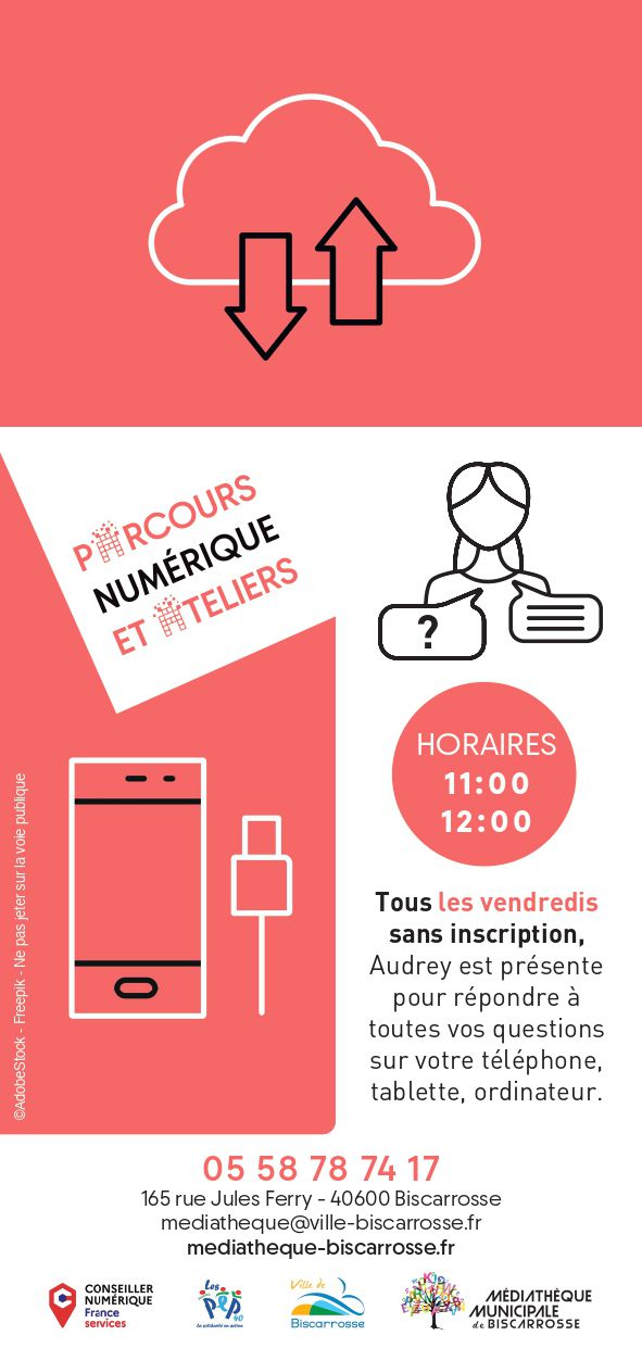 Tous les vendredis de 11h à 12h , sans inscription, Audrey est présente pour répondre à toutes vos questions concernant votre téléphone, tablette, ordinateur .