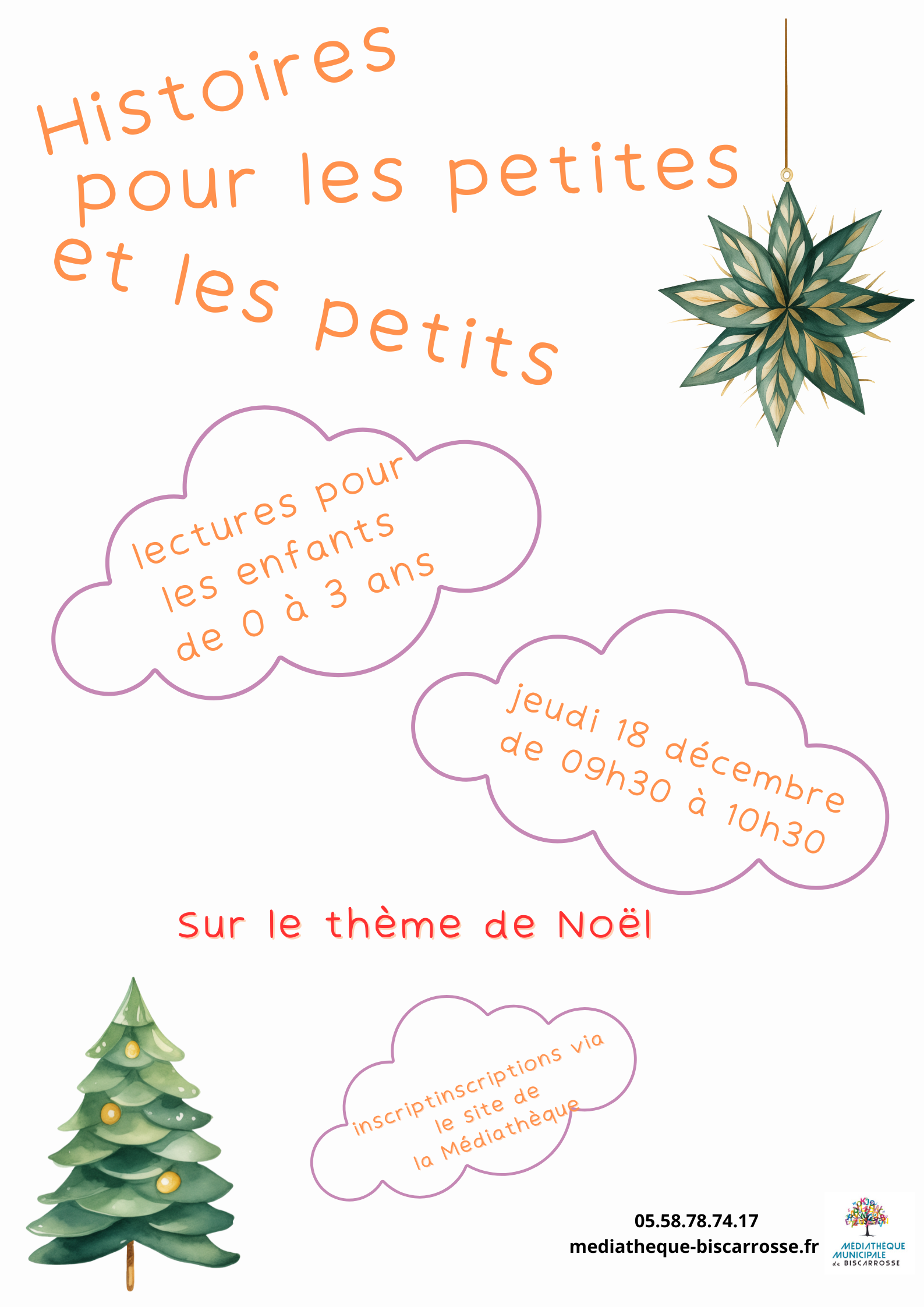 • Un jeudi de 9h30 à 10h30 une fois tous les deux mois : 18 décembre sur le thème de Noël