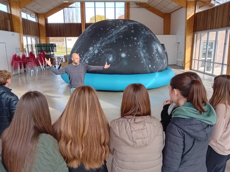 Le planétarium est une formidable machine à voyager dans le temps et l’espace. Avec son système de projection numérique, les scénarios d’animation se construisent à l’infini : balades dans l’Univers, voyage au cœur du soleil, constellations, phases de la Lune, découverte des planètes, rencontre avec les objets du ciel profond… Tout devient possible selon le groupe. L’animateur emmène le public vers des horizons où se mêlent l’intérêt scientifique et l’approche sensible.